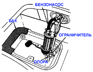 БензонасосБензонасос шестеренчатого типа, с питанием 12 Вольт. Нагнетает топливо в систему впрыска. Когда бензонасос выключен, обратный клапан бензонасоса предотвращает слив топлива обратно в бензобак. Таким образом, при неработающем бензонасосе обратный клапан поддерживает давление в системе от 1,3 до 2,7 Атм. При работе системы, регулятор давления поддерживает давление в системе около 2,14 Атм (ваккуум подается к регулятору). В случае отсутствия вакуума, давление в системе возрастает до 2,9 Атм.