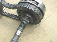 Вынимаем основной вал вместе с цепью и валом переднего карданного вала. Делать это лучше вдвоем, потому что весит прилично. Вынимается легко.