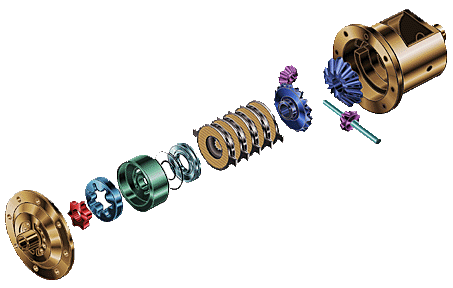 По сути - это гидро-механический дифференциал повышенного трения. В дифференциал встроен героторный насос (принцип действия, как у шестеренчатого масляного насоса). В случае межколесного дифференциала, ротор этого насоса приводится одной полуосью моста, корпус - другой. Развиваемое давление масла зависит от разности скоростей вращения полуосей и, в случае появления таковой, давление передается через поршень к многодисковой фрикционной муфте. Сила трения в муфте возрастает, дифференциал блокируется. Преимущества: