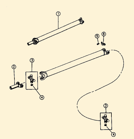 1. карданный вал 2. вилка карданного шарнира 3. крестовины 4. стопорные кольца 5. винты 6. крепежные кольца